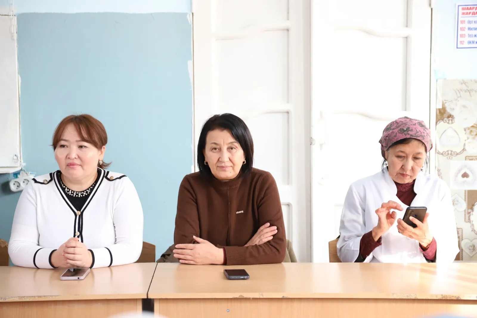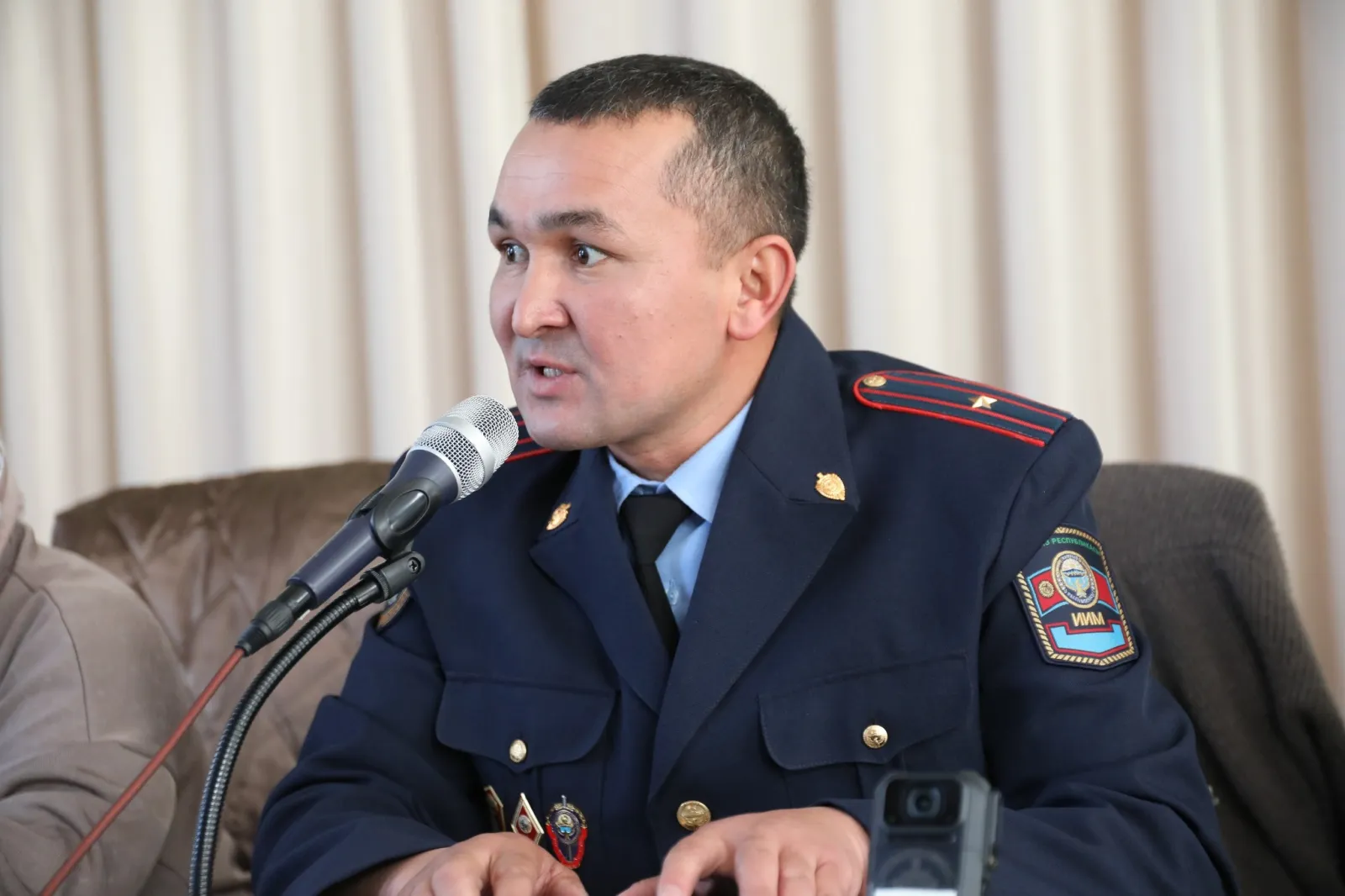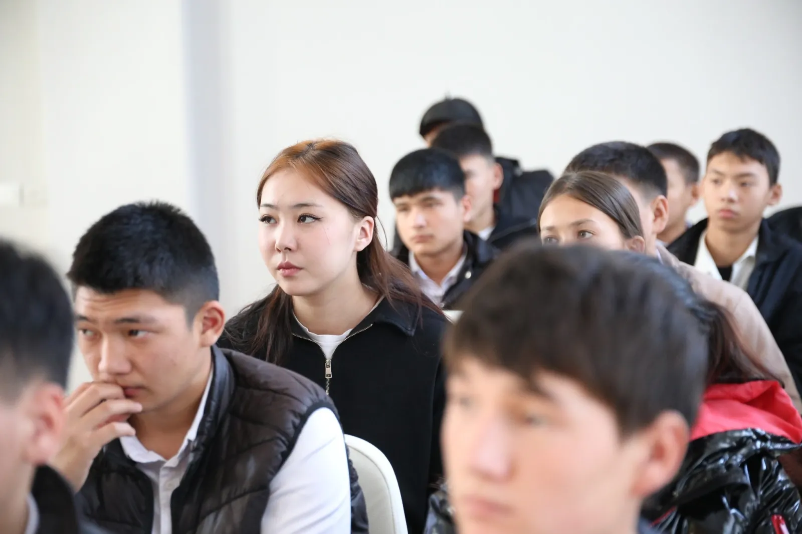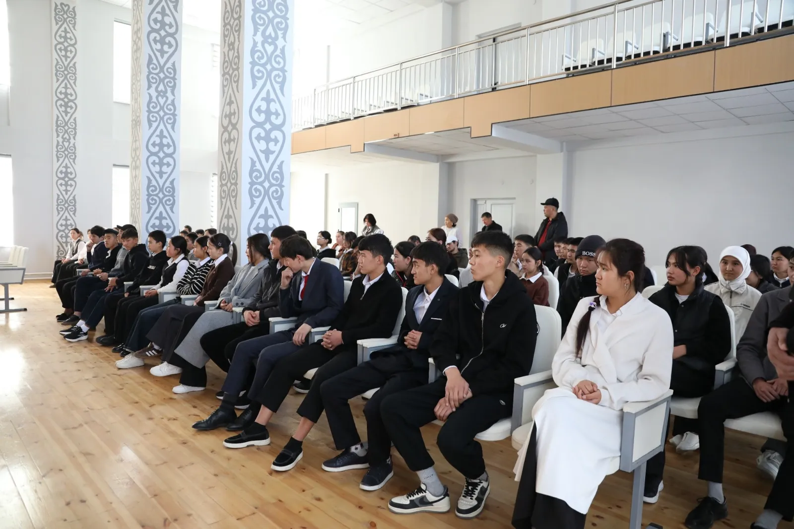 Жолугушууда окуучуларга жана студенттерге эрте турмуш курууну терс кесепеттери жана кылмыш жасагандарга берилүүчү жазалар туурасында маалыматтар берилүүдө.