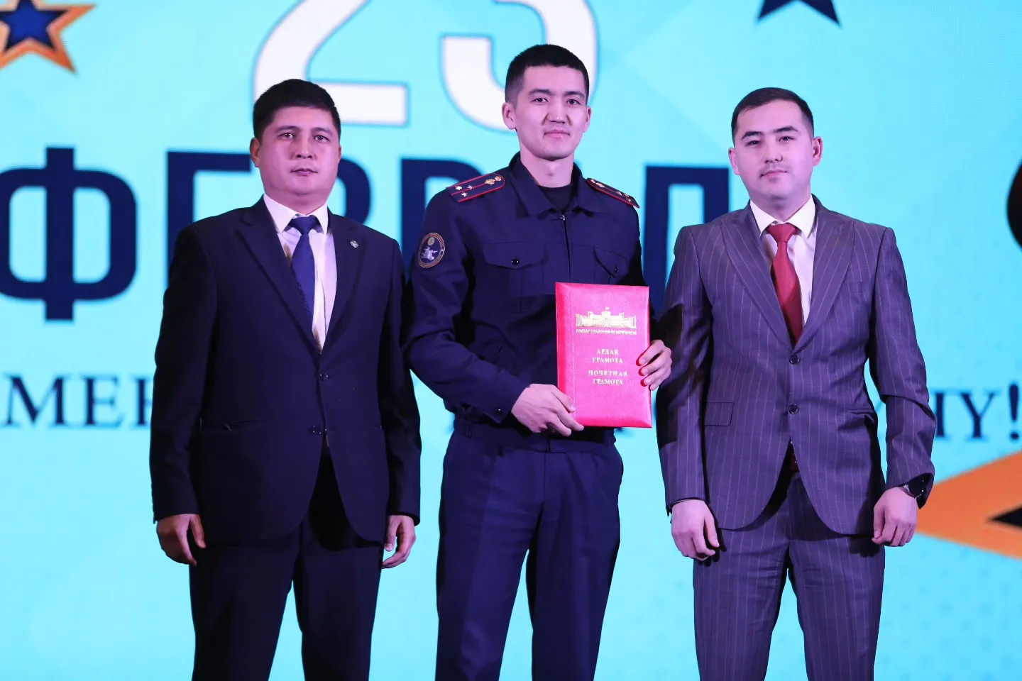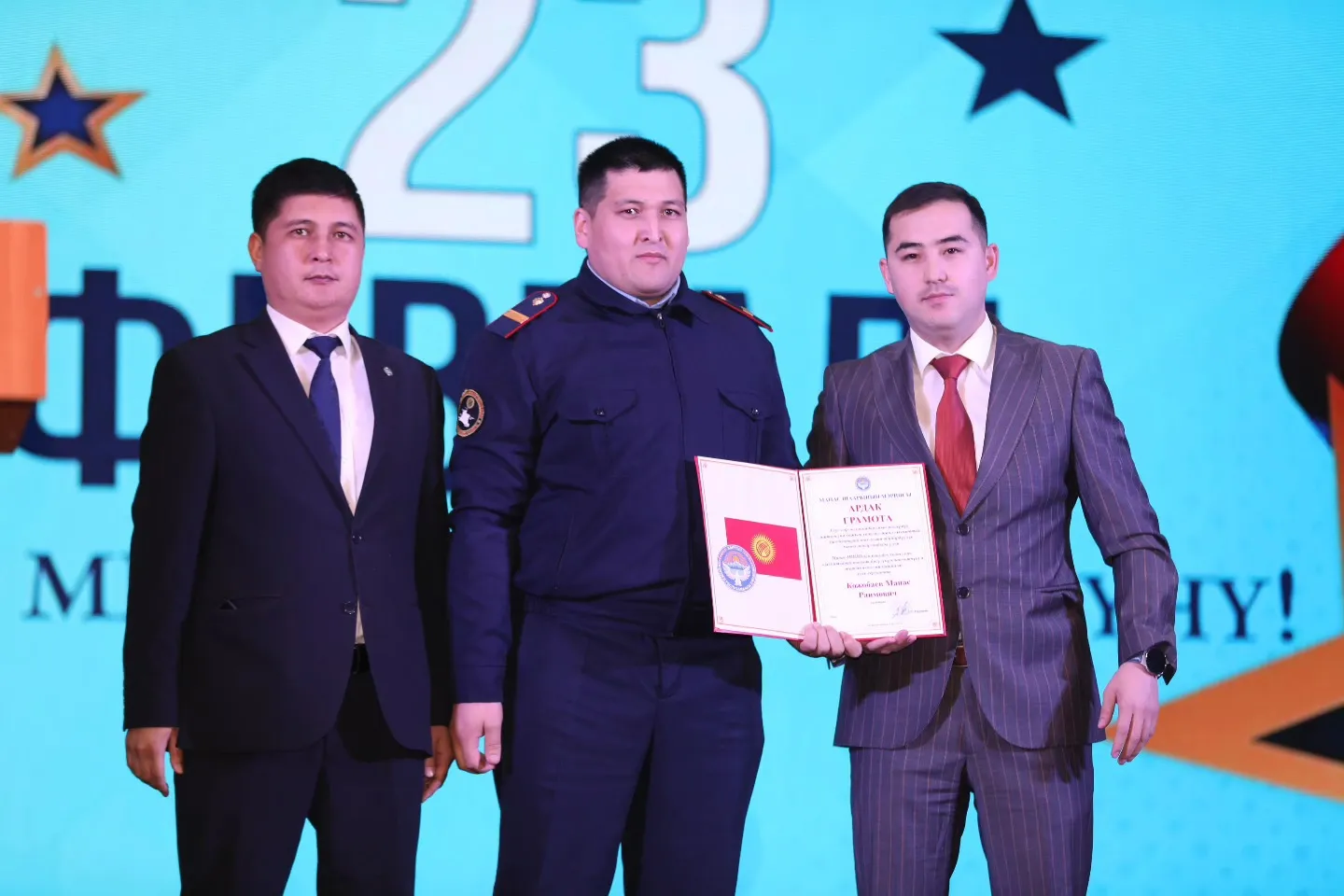 Салтанаттын жүрүшүндө Ата Мекенди коргоочулардын майрамы менен куттуктоолор айтылып, күч түзүмдөрүндө эмгектенип жаткан бир катар кызматкерлерге, ошондой эле шаардын өнүгүшүнө салым кошуп келе жаткан ар тармактын өкүлдөрүнө Ардак грамоталар тапшырылды.