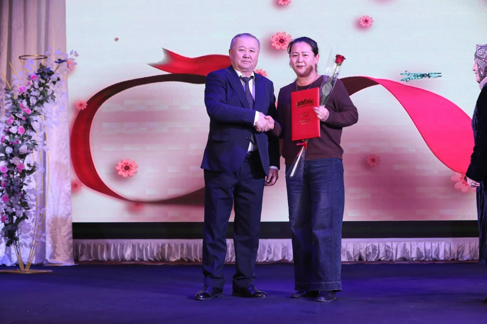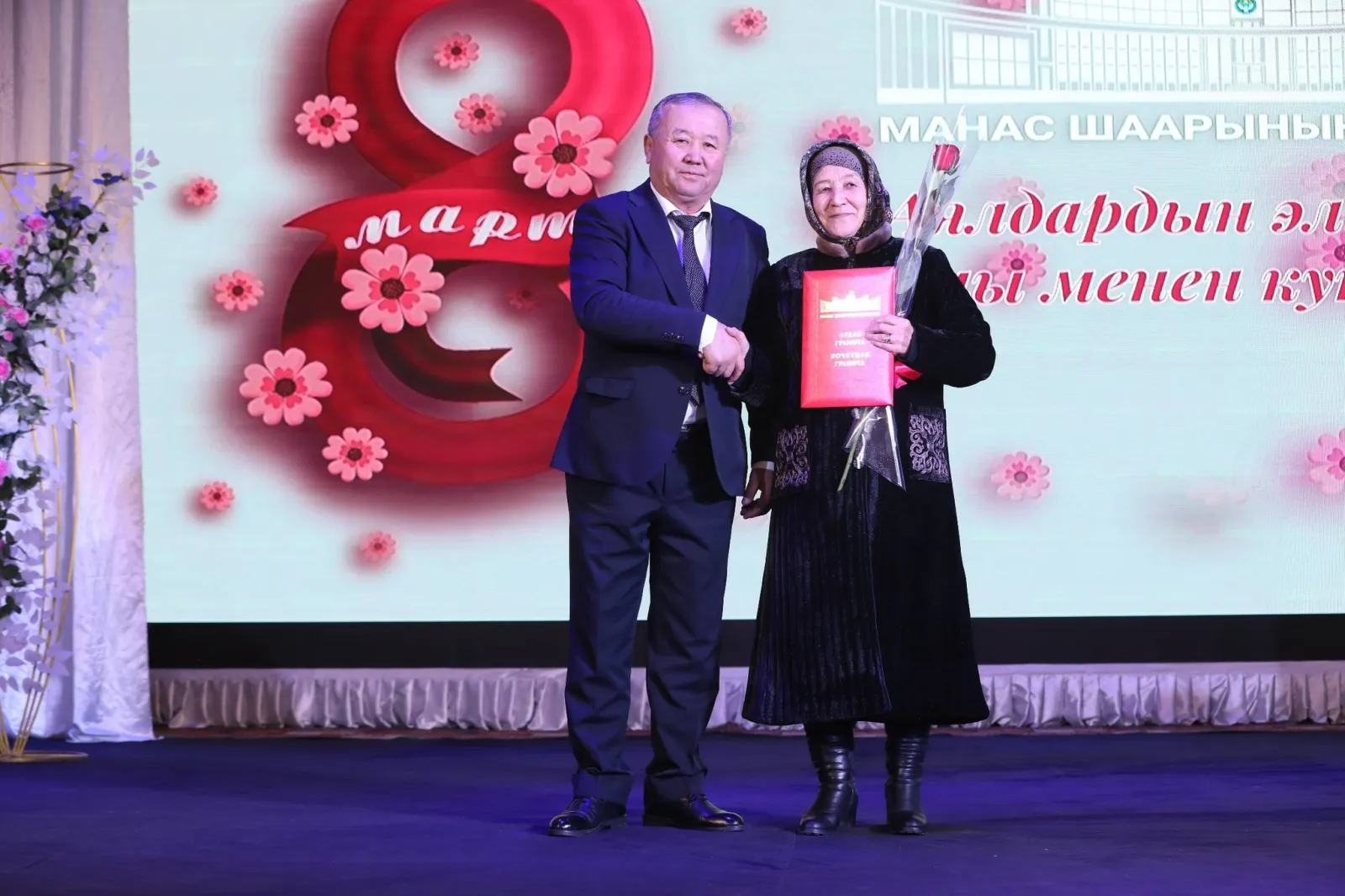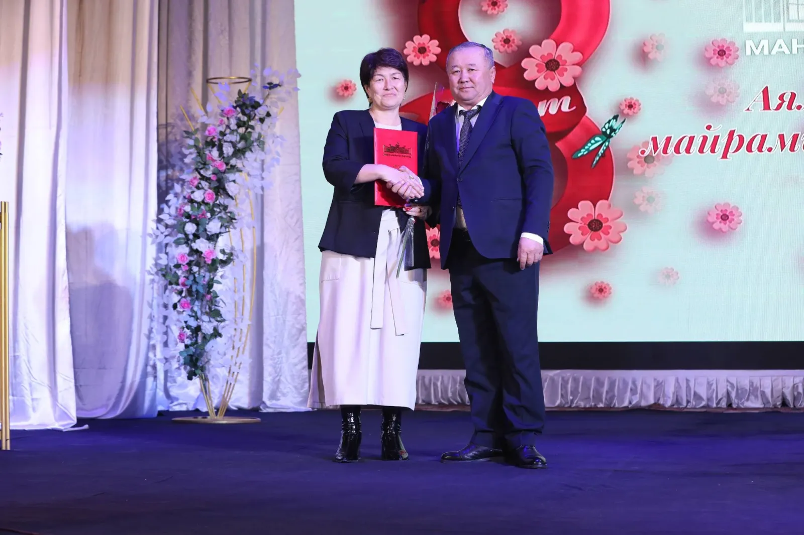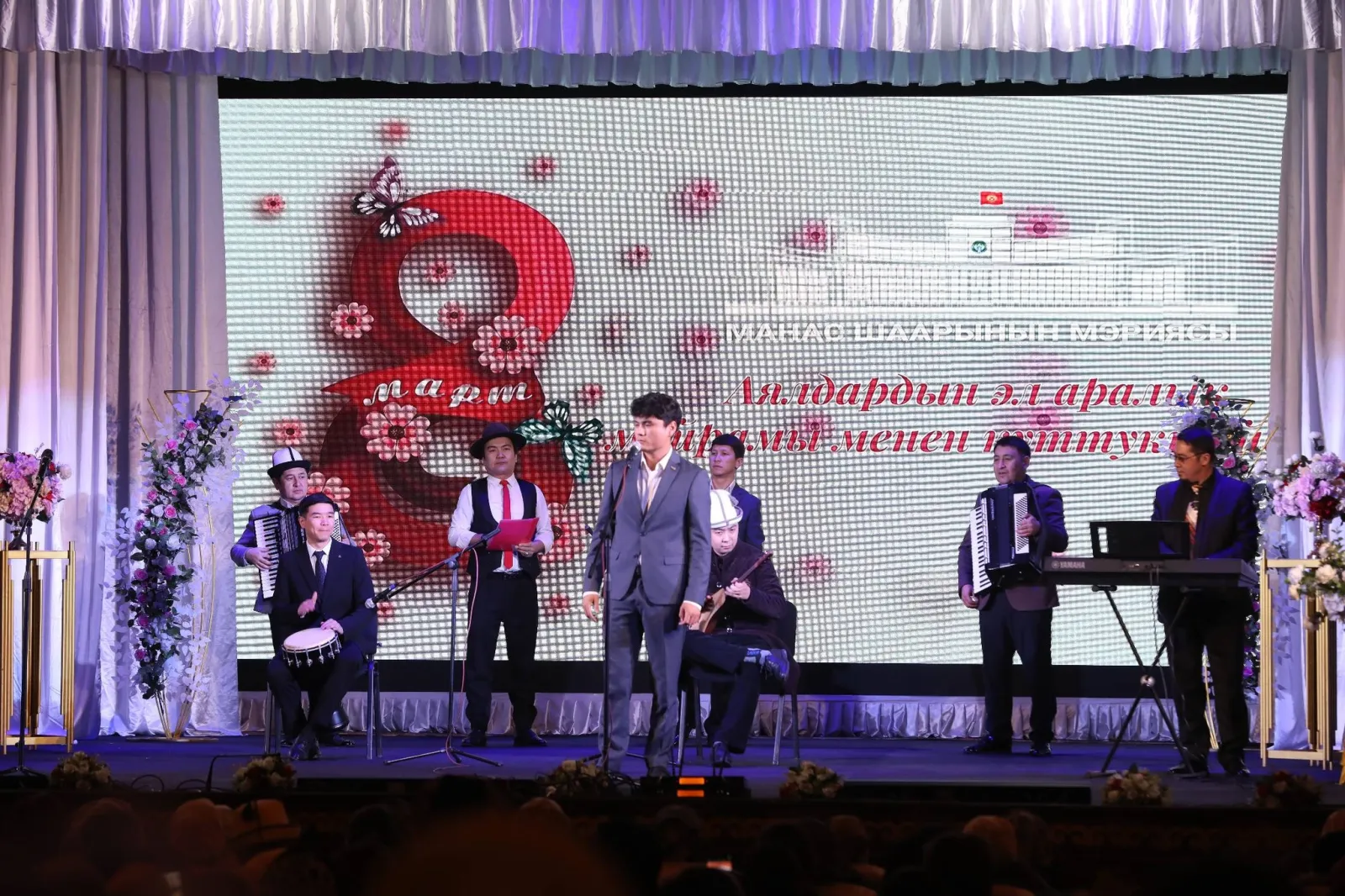 8-март — Аялдардын эл аралык күнүнө карата Манас шаарындагы облустук Барпы Алыкулов атындагы кыргыз драма театрында майрамдык иш-чара болуп өттү.