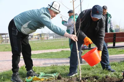 Ишембиликтин алкагында шаар мэри “Достук” паркында болуп, көчөт отургузуу иш-чарасына катышты.