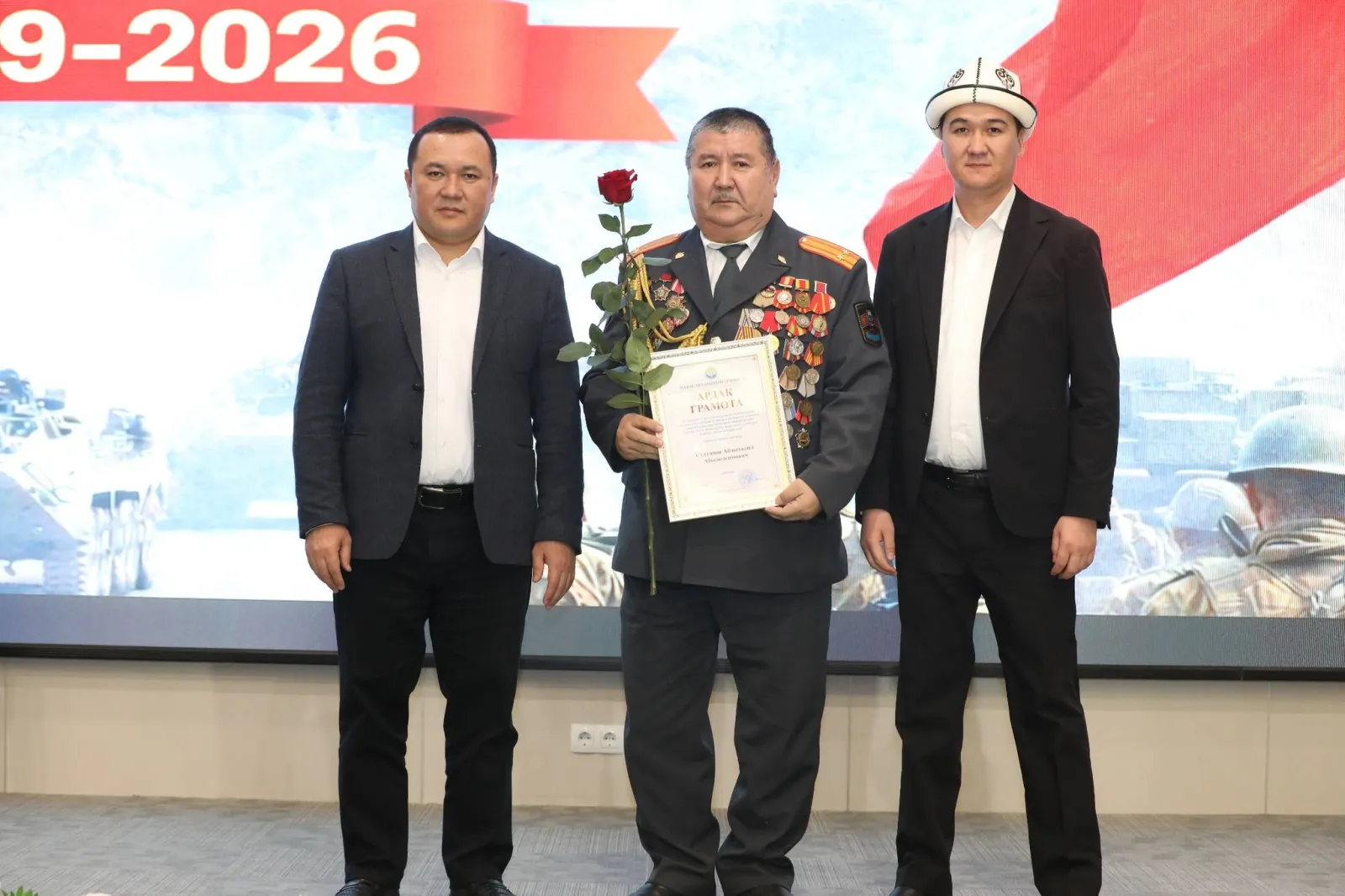 Анда сөз сүйлөгөн шаар мэри Эрнисбек Ормоков Ооган согушунда аскердик антына бек туруп, өз милдетин так аткарган жоокерлердин эрдиги тарых барактарында түбөлүк сакталарын белгиледи. Ошондой эле ардагерлердин каармандыгы жаш муундар үчүн мекенчилдиктин үлгүсү экенин кошумчалады.