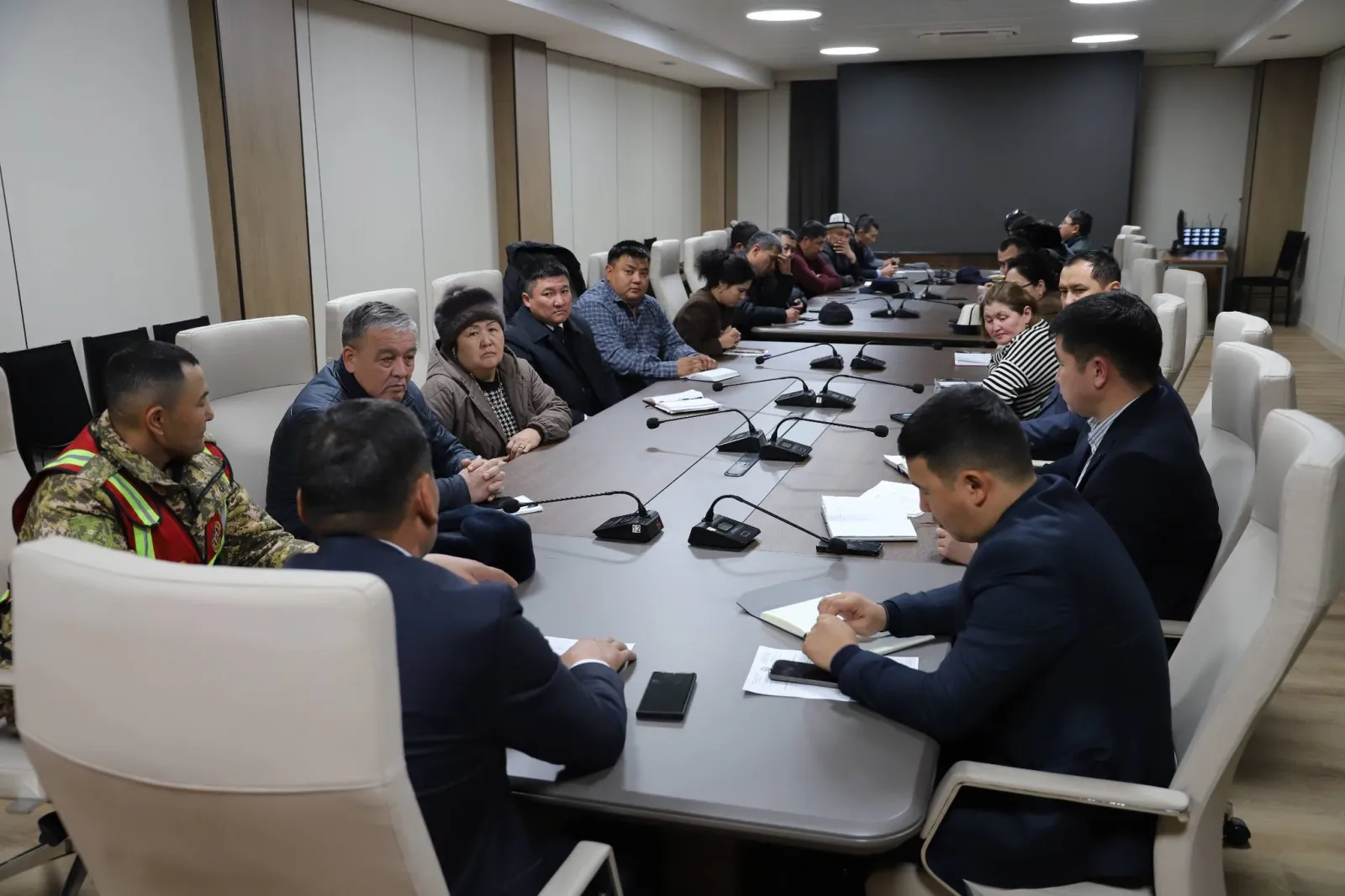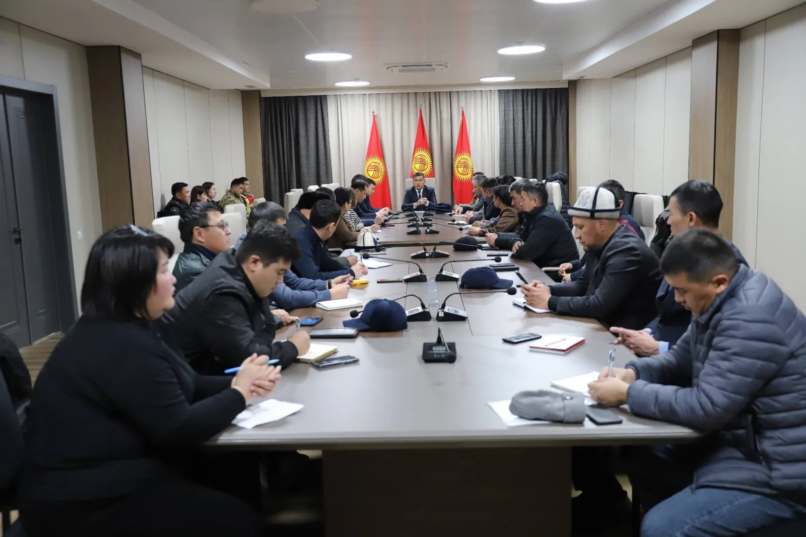 Жыйындын жүрүшүндө 16-январдан тарта аба ырайынын кескин өзгөрүшү күтүлүп жатканы белгиленип, ушул шартта көрүлө турган даярдык чаралары талкууланды. Тиешелүү жетекчилер тарабынан учурдагы абал боюнча маалыматтар берилип, баардык тармактарда мүмкүн болгон авариялык кырдаалдардын алдын алуу жана ыкчам аракеттенүү боюнча бир катар тапшырмалар коюлду.